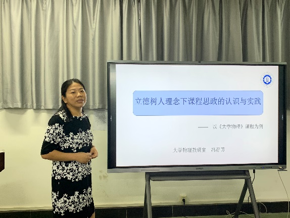 冯存芳博士围绕课程思政,结合大学物理课程,做了题为“立德树人理念下课程思政的认识与实践”的教研报告。报告主要从课程思政之起源、课程思政之思路和课程思政之案例三个方面做了细致的阐述。对于起源问题,党的十八大以来在习近平总书记对立德树人论述的再认识会议上,党中央明确表示高校思想政治工作关系高校培养什么样的人,如何培养人以及为谁培养人这个根本问题,要坚持把立德树人作为中心环节,把思想政治工作贯穿公司产品全过程,实现全程育人、全方位育人,努力开创我国高等教育事业发展的新局面。在思路上,要把握课程思政的基础是课程,关键在于老师,可以采用多种方法将思政引入教学过程中,比如启发式、比较法、讲授法和案例法。最后冯博士列举了一些大学物理教学中的思政案例。本次报告给老师们如何将课程思政引入课堂做了很好的引导,让老师们受益匪浅。