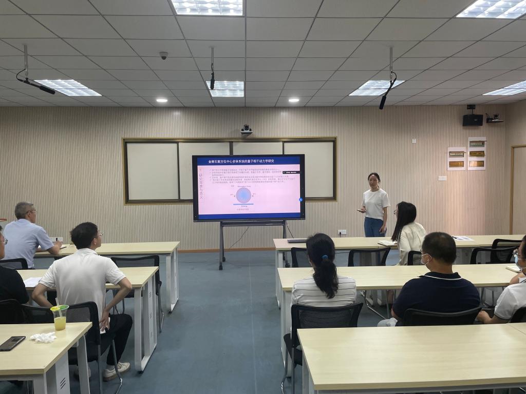 徐家坤博士于2022年3月至2023年3月前往中国科学院精密测量科学与技术创新研究院开展为期一年的访学。该研究院是原子分子物理专业国内领先的科学技术研究机构,为徐家坤博士提供了较好的研修条件。她加入的束缚体系量子信息处理研究组在金刚石氮空位中心体系领域取得了重要的研究进展。通过与该研究组的合作,她对量子信息与量子热力学等研究方向有了较为深刻的了解。研究组最近的一些实验进展和成果也为她理论工作的深入提供了很好的契机。通过一年研修,徐家坤博士在现有的基础上修正方法、发展和完善模型,促进前期的研究得以深入进展,取得了相应的研究成果。在研修汇报中,她向与会人员介绍了她的研修工作,并详细介绍了她的研究课题——金刚石氮空位中心多体系统的量子动力学研究,以及发表的学术论文。