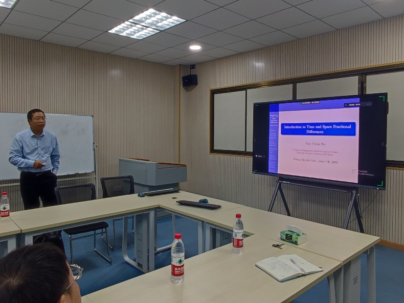内江师范学院吴国成教授在“时-空间分数阶微分方程的简介”报告中,回顾了经典分数阶导数和积分的特点,分析了采用数值方法离散分数阶导数存在的问题,从而介绍了研究分数阶离散时间系统的新思路:离散分数阶微积分。报告通过分数阶混沌映射、分数阶混沌加密、空间分数阶扩散方程等应用,展示了该领域在理论研究和应用方面的广阔前景。